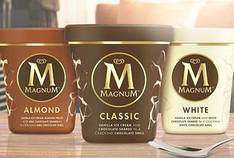 Magnum propose une nouvelle gamme de glaces, les glaces en pot. Le produit, décliné en « classic », « amande », et « blanc », chacun contenant 30 % de chocolat, est lancé en même temps dans plusieurs autres pays européens.
