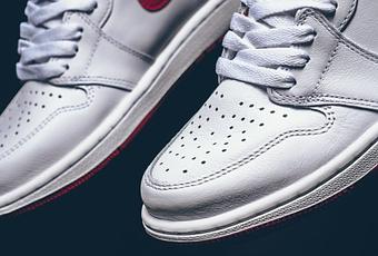 Initialement sorti en 1986, le coloris Metallic Red s’inscrit dans la lignée de tout un pack habillant la Jordan 1 de cette construction avec une paire violette, bleu ainsi que verte. La paire revient cette saison dans une construction proche du modèle original avec une empeigne en cuir pleine fleure entièrement blanc habillé d’un swoosh rouge. Il faudra cependant faire sans les reflets métallique de la paire originale. On retrouve également des notes de rouge au niveau du col de la chaussure et de sa semelle qui se présente d’une manière bicolore.