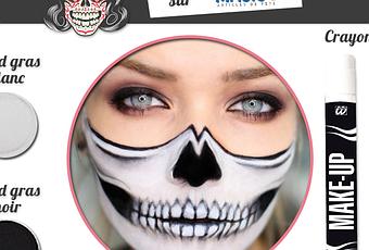 Voilà le matériel à utiliser pour un maquillage de squelette femme réussi.