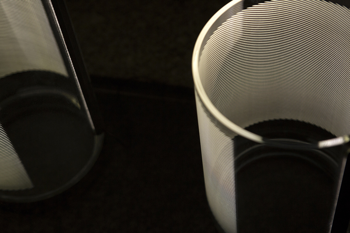 Suite à l’applique murale, des conceptions utilisant les attributs conducteurs de lumière à travers le verre ont été développées pour des structures tridimensionnelles. Mais la source lumineuse demeurait toujours invisible.