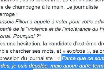 Mme Le Pen traite Fillon de "merde" dans le journal italien Corriere della Sera. Toujours cette même distinction qui fait la marque du FN