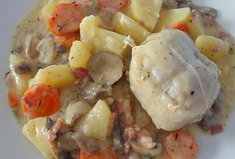 Paupiettes de porc aux légumes, lardons et sauce crémeuse