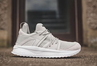 Le mois dernier, la marque allemande dévoilait en exclusivité chez Kith la Tsugi dont la distribution s’est depuis considérablement élargie. La paire est aujourd’hui déclinée dans une construction Blaze synonyme d’une empeigne qui gagne de la hauteur chez Puma grâce à une chaussette en néoprène habillé d’un branding sur sa languette. Cette silhouette offre également une constitution tissée sur une bonne partie de sa toe box offrant un panel en suède sur sa partie avant. À l‘image de la Tsugi, cette Blaze repose sur une semelle Ignite totalement blanche, nouvelle génération offrant une constitution crantée sur sa outsole.