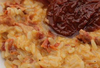Vous pouvez soit le déguster bien chaud en plat seul ou bien accompagné d'une viande. Je l'ai accompagné de Porsciutto afin de voyager un peu plus en Italie.