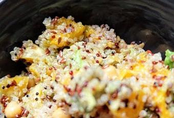 Couper les oranges en morceaux puis les mélanger au quinoa.