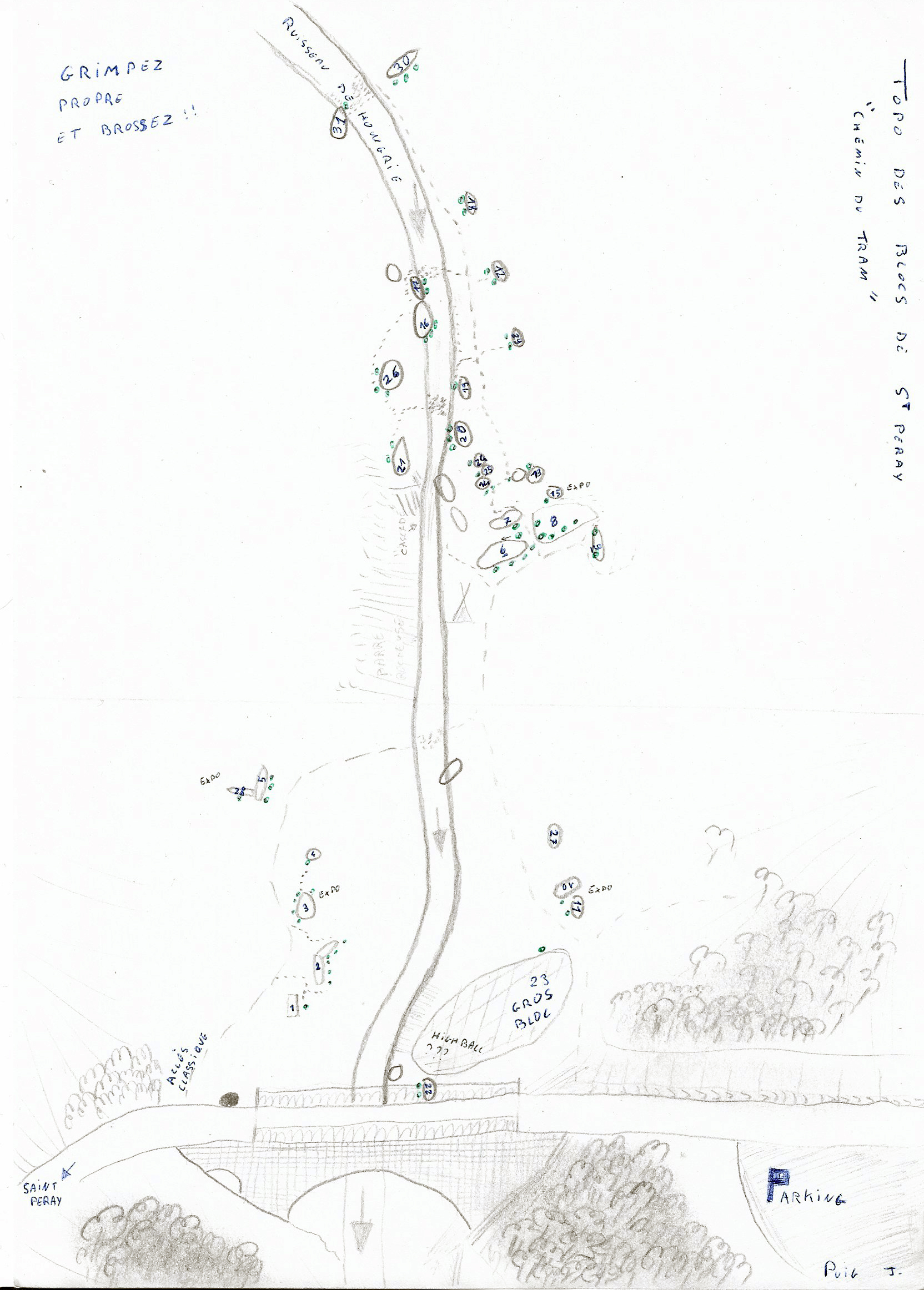Je vous propose le topo du spot de bloc de Saint Peray, à proximité de Valence, que nous avons commencé à développer en 2015 avec les grimpeurs du VUC (Valence Université Club) et quelques stapsiens. Comme quoi c’est possible de faire du bloc à Valence, il n’y a pas que des falaises dans le coin!