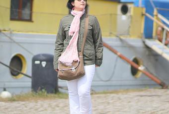 Le chèche peut être porté en turban ou juste autour du cou et sa couleur rose est juste parfaite avec le kaki !