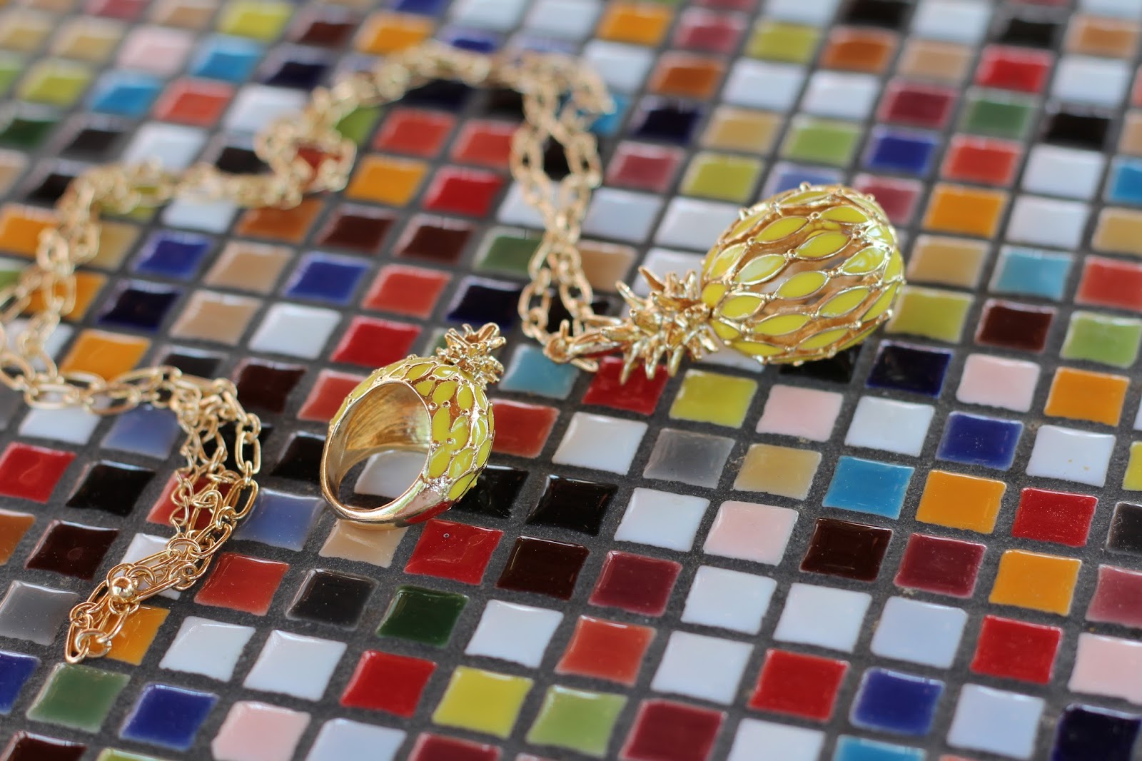 Malgré que le sac était déjà orné de quelques pompons, vous me connaissez bien maintenant, j'ai voulu y ajouter un p'tit bling avec ce porte-clés toucan! Il est si mignon. Je suis aussi en amour avec l'ensemble ananas doré (les items sont vendus séparément, mais il me les fallait tous, bien entendu!).