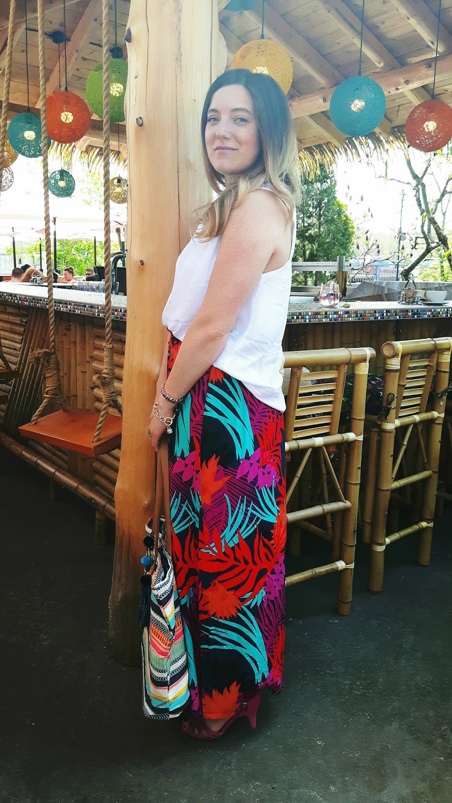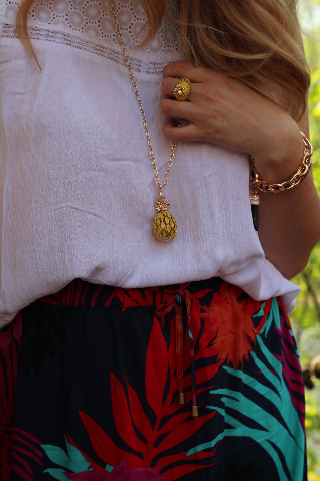 Du coup, quand Walmart m’a approchée pour créer un look estival, l'envie m'a prise d'en élaborer un qui s'inscrivait dans l'ambiance tropicale que je souhaite créer. La jupe longue fut un réel coup de cœur et le point de départ pour créer mon ensemble. J'aime qu'elle soit fendue de part et d'autre, ça ne nuit pas au mouvement, bien au contraire.