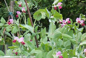 Les pois capucine, avec leurs superbes fleurs rose-violet et ensuite leurs cosses violettes presque noires, apportent de la couleur au jardin.