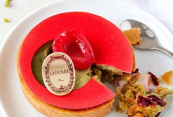 Après la fête des mères, arrive bientôt la fête des pères non ?! Il faut bien trouver des excuses pour déguster un bon gâteau. Je souhaite vous parler de ma dernière découverte et surtout mon dernier coup de coeur culinaire (whaou) : la tarte griotte - pistache de Claire Heitzler, Maison Ladurée. En soit, nous parlons d'un accord assez évident et qui à l'oreille annonce une belle rencontre, mais, là c'est une vraie tuerie (oui, je me lâche) !