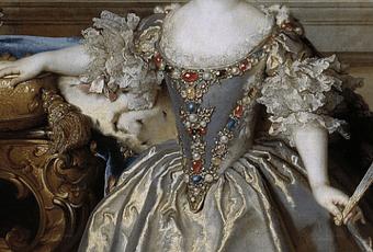 Détail d’un portrait représentant Louis XV et l’Infante Marie-Anne-Victoire par Simon Belle vers 1724 (Château de Versailles)