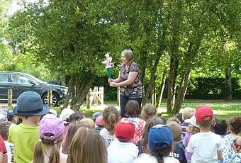 Véronique J et Annick participent au jeu d'Hector et ses insecte