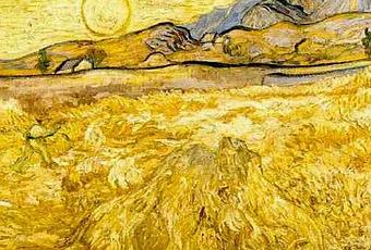 Vincent Van Gogh, Champ de blé avec un faucheur et soleil