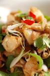 Ajouterzle piment épépiné et détaillé, la citronnelle hachée, l’oignon rouge et environ un tiers de l’oignon émincés, de la coriandre et la menthe fraîche.Mélangez soigneusement.