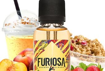 Le e-liquide Dragon Clouds par Furiosa est un mélange de milkshake nectarine, de coulis de fraise et d’éclats de céréales. On le retrouve en flacon de 10ml pour une composition en 10% PG et 90% VG.
