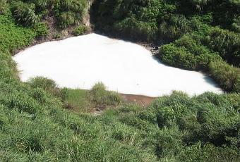 Ce petit lac de lait, perché dans les hauteurs de Yangminshan,(Taipei) n’en a pas toujours été un. Au départ, il s’agissait d’un grand puits à ciel ouvert de la compagnie minière Ruiyong qui en disposait de trois sur les lieux où elle extrayait le soufre. Pour les deux autres puits, près du lieu appelé Lengshuikeng, l’eau claire y a coulé en abondance, offrant alors aux strates inférieures du sol montagneux volcanique une richesse en eau telle qu’on jouit aujourd’hui de pâturages et flore d’un vert émeraude que nous voyons aujourd’hui. Pour ce qui est du troisième puits, plus proche du mont Qixing, l’eau n’a pu s’infiltrer dans le sol de la même manière et s’est accumulée, à force de pluies, donnant naissance à une flaque, puis un petit lac.Mais pourquoi cet aspect laiteux?Au fil des ans et du temps qui passe sans suspendre son vol, des minéraux métamorphiques en suspension dans l’eau ainsi accumulée se sont déposés et ont formé un sédiment blanc dans le fond du lac. Avec les rayons du soleil, l’eau du lac réverbère la paroi blanche pour offrir au lac son aspect laiteux.Autre phénomène curieux : l’absence de végétation dans les eaux du lac, ce qui contraste avec la végétation verdoyante environnante. En réalité, l’eau du lac contient une concentration de de matière volcanique si forte qu’elle empêche la croissance de quelconque plante aquatique.