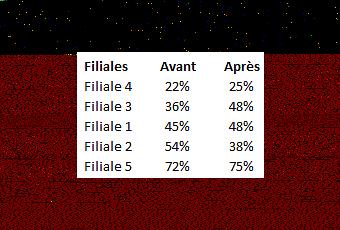 Au final, j’ai copié mon graphique du côté droit des noms de filiales et j’ai décoché l’option Values in reverse order (valeurs en sens inverse) et j’ai changé les données sources pour aller chercher les données de ma colonne “après”.
