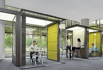 Autoportant et indépendant de la structure du bâtiment, ce concept s’installe dans tout espace de bureau et se déplace aisément selon vos envies.