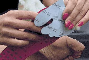 Par contre, j’espère que vous n’avez pas de complexes sinon ça risque d’être un inconvénient. Baptisée Nakefit, cette semelle adhésive va venir se placer sous vos pieds. L’installation est un jeu d’enfant et ça va s’avérer très utile pour ne pas glisser.