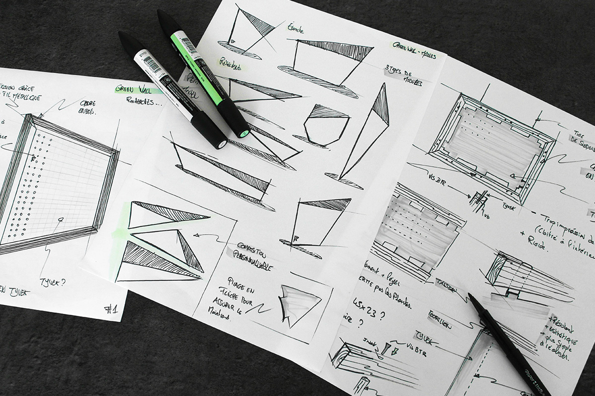 Greenwall 2017 est un projet qui a été réalisé dans le cadre du Séminaire matériau proposé par l’école de Design Nantes atlantique. Il a été conçu sur un principe permettant la construction, l’assemblage et la modularité de ses propres jardinières. En effet, c’est un tableau suspendu habilitant les utilisateurs à l’adaptation de différentes tailles de planteurs pour la construction de leur propre jardin intérieur.