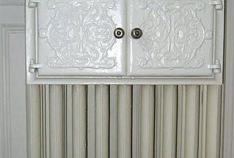 Aujourd’hui nous dérogeons au thème du blog pour vous montrer un objet à la fois utile et très esthétique : un radiateur chauffe-plat en fonte fleuris. Ce modèle est décoré de motifs rococos.