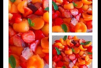 Je passe vite fait pour voir dire que je serais absente quelque temps de la blogosphère, car je n'ai plus d'internet chez moi (je ne sais pas quand ils vont venir réparer la ligne qui a été arrachée par un tracteur), mais surtout, car je n'ai plus le temps de cuisiner avec le boulot ou c'est une très grosse période pour nous. Je ne vous oublie pas. Pour les gagnants de mon concours je m'en excuse, mais je n'ai pas eu le temps de faire partir les cadeaux. Pour patienter voici une petite salade de fruits que j'ai réalisés pour la fête des pères. Rien de compliquer deux personnes.">deux personnes.">3 pêches blanche, 1 melon et une barquette de fraise le tout bio et local.