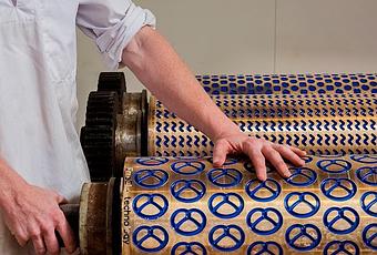 Pour les bretzels, versée dans une trémie tout au début de la ligne de fabrication, la pâte est poussée contre un rouleau matriceur, pénètre à l’intérieur des « moules » et prend ainsi sa forme caractéristique.Les bretzels sont ensuite démoulées et déposées sur un tapis de convoyage.Il existe différentes tailles de bretzels chez Boehli, et des biscuits aux formes différentes comme les rondzels, biscuits ronds sur lesquels on ajoute des graines de pavot et de sésame.