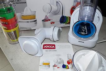 J'ai reçu le robot 3 en 1 en test à la maison et j'en suis ravie. Il a 3 fonctions comme son nom l'indique: * Il coupe, râpe et presse.* Il presse les agrumes.* Il sert de sorbetière.