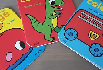 Il faut bien avouer que ce qui m'a fait facilement craquer dans ces cahiers de coloriage ce sont les dessins et le graphisme très adorable, enfantin de Marion Billet avec des contours arrondis, des formes bien visuelles et définies, des yeux souriants, des bouilles d'animaux et de personnages vraiment attractives et attirantes. A partir de 3 ans et +, je ne les laisse pas entre les mains de Timothée sinon je retrouverais les ouvrages tout gribouillés, et c'est le genre de coloriages qu'on a envie de garder pour les petits frères et pour plus tard. Pour l'instant j'ai fait photocopier les dessins et Timothée s'entraîne à choisir ses couleurs (il n'a pas encore intégré l'idée de recopier le modèle proposé) et de colorier des parties. Je pense qu'en rentrant à la maternelle, ce sera le type de cahiers appropriés pour débuter en coloriages et lui apprendre progressivement à 1/ ne pas dépasser, 2/ respecter les couleurs du modèle. C'est une collection très sympa, largement accessible et dont la renommée de l'illustratrice n'est plus à faire!
