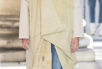 En quelques jours, Hed Mayner est devenu le nom à retenir. Encore dans la confidence il y a quelques mois, le jeune Israélien a envoûté les journalistes et commentateurs de la Fashion Week Parissienne lors de ce premier défilé. Prise d’assaut, cette collection nébuleuse, aux volumes flottants, soufflés de nonchalance, résulte d’une fine maîtrise des techniques de coupes. Depuis ses 16 ans , Hed Mayner confectionne des tenues: désormais elles s’évadent de la brume pour bientôt entourer les silhouettes avec des draps de laine, du coton rayé ou encore des toiles de tentes et du cuir d’ameublement. Si les volumes et les couleurs de la collection reflètent la lumière du soleil, c’est aussi de cette lumière que le créateur dote des tissus, a priori en fin de parcours. Ressusciter les matières, mais aussi les pratiques vestimentaires, s’inspirer des pays, de son enfance : une promesse pleine de lueur.