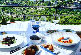 La terrasse du restaurant, perchée sur les hauteurs du village de Gordes, offre un panorama exceptionnel sur le Lubéron et ses montagnes. Il y a une conjonction entre un repas renversant et cette vue sublime. Et si en plus, vous allez déjeuner avec l’homme ou la femme que vous aimez, c’est juste une petite apothéose !