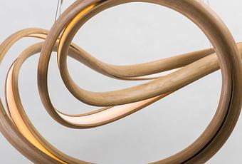 Pour la réalisation de ses objets d'éclairage, John utilise du papier ruban le tord et le transforme en modèle. Ensuite, il se place sur le bois, plutôt d'essayer d'imiter exactement la forme du modèle papier, il permet au bois de diriger la forme, ce qui entraîne une collaboration entre le bois et lui.Au fur et à mesure le luminaire prend vie il incorpore du Led fait les finitions. Le résultat est vraiment élégant et organique.