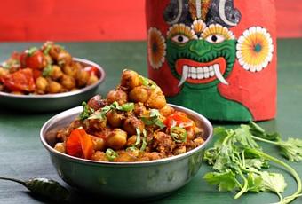 Vedic: Replace garlic and onions with a pinch of asafoetida (hing) powder and more chopped tomatoes. Redder: Add 1 Tbs tomato paste along with chickpeas. Extra-Dry: Omit tomatoes and add (additional) 1-2 Tbs grated coconut.