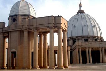 La Basilique Notre-Dame de la Paix de Yamoussoukro est un des édifices religieux catholiques les plus grands au monde. Son apparence rappelle celle de la basilique Saint-Pierre à Rome. Bâtie sur les plans des architectes Pierre Fakhoury et Patrick d’Hauthuille, choisis par le Président Félix Houphouët-Boigny, la Basilique Notre Dame de la Paix a été réalisée par 24 entreprises nationales et internationales entre 1986 et 1989. Près de 1 500 ouvriers africains ont participé au chantier, placé sous le contrôle d’Antoine Cesareo, directeur des grands travaux de la République de Côte d’Ivoire. Son emplacement a été choisi par le premier Président du pays, Félix Houphouët-Boigny, en 1983. Le livre Guinness des records l’a reconnu en 1989 comme le plus grand édifice religieux chrétien au monde. Aujourd’hui, la Basilique est encore un lieu fervent de la foi catholique en Afrique.