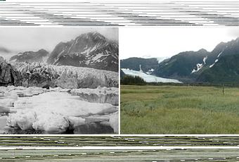 Sur la gauche de la glace en 1917 au moment de sa découverte, juste une photographie récente montrant le changement choquant.