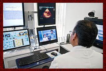 Télémédecine: Le Dr Juan Manuel Romero, cardiologue à l’hôpital de Ciudad Obregon, Mexique, effectue une consultation préopératoire avec Alma Guadalupe Xoletxilva et son médecin traitant, Edgar Cuevas, basés à 400 km de distance à La Paz, Basse Californie. Source iconographique et légendaire: https://commons.wikimedia.org/wiki/File:Telemedicine_Consult.jpg