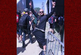 L’entré est refaite à neuf et c’est un magnifique portillon en forme d’ampli Orange et Marshall qui accueille le chaland. Les décors sont impressionnants jusque dans les moindres détails. Le public n’a pas encore franchi le sas symbolique de la cathédrale qu’il en prend déjà plein la poire. Pas de décors « cheap » ou de choses faites à moitié. On a l’impression d’être dans un univers parallèle. Une ville dans une ville.