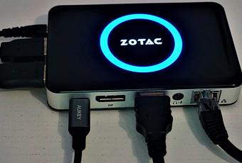 Si le CPU de cette mini machine ZOTAC est apte à décoder la 4K, il faut savoir que son GPU est plus limitant. En effet, le circuit graphique Intel HD Graphics offre une sortie vidéo HDMI 1.4b limité à une résolution de 1920×1080 @60hz. Le Display Port (DP 1.1a) permet quand à lui de monter jusqu’en 2560×1600 @60hz.