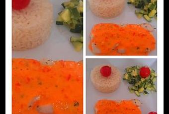 10- Dans un temps limité.">un temps limité.">un temps limité.">une assiette mettre le poisson le nappé de sauce. Dans un temps limité.">un temps limité.">un temps limité.">un coin mettre le riz, les dés de courgettes et les tomates cerise.