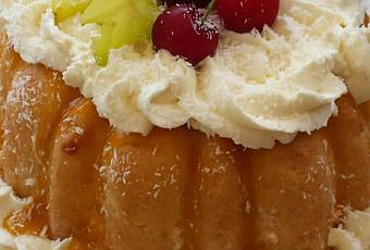 - Faire tremper très rapidement chaque biscuit cuillère dans le sirop d'ananas et le placer face bombée vers l'extérieur du moule à charlotte. Bien les serrer et continuer jusqu'à remplir tout le tour du moule
