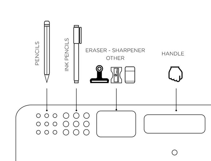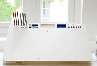 Tous vos stylos, feutres, crayons, smartphone, feuilles, accessoires pourront soigneusement être disposés et resteront disponibles en un seul geste. La surface de travaille pourra elle s’incliner, sept positions seront possibles afin de correspondre à votre position « créative » idéale et vous éviter certains désagréments : maux de dos, bras, cou ou poignet…