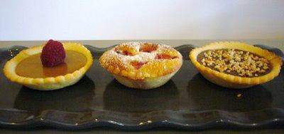 Ce soir, le choix était difficile dans les tartelettes : caramel au beurre salé un délice fondant en bouche, ganache Toblerone pour changer de la classique version au chocolat ou une variante aux fruits de saison amande /groseilles à maquereaux (fruits pas très utilisés mais avec un goût incomparable).