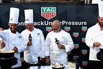 Puis, à la veille du départ tant attendu, c'est sur le bateau SeaDream aux couleurs de la marque et amarré dans le port de la Principauté, que Jean-Claude Biver, CEO de TAG Heuer et Président de la Division Montres du Groupe LVMH, a reçu ses invités pour une soirée exclusive, glamour et branchée. Parmi eux, l'acteur australien et ambassadeur TAG Heuer Chris Hemsworth, lié au sport automobile depuis 2013, lorsqu'il a prêté ses traits au pilote de Formule 1 James Hunt, dans le film Rush, ainsi que sa femme Elsa Pataky. Egalement présente à la soirée, la bloggeuse Chiara Ferragni, qui a fêté ses 30 ans au début du mois. Jean-Claude Biver a ainsi profité de l'occasion pour célébrer son anniversaire sur le bateau. Sans oublier le pilote Daniel Ricciardo de Red Bull Racing, avec qui TAG Heuer a renouvelé en novembre dernier son contrat de partenariat pour deux saisons supplémentaires, ainsi que le célèbre chef français et ami de la marque, Philippe Etchebest, qui a arbitré un challenge culinaire organisé entre les deux Australiens Chris Hemsworth et Daniel Ricciardo.
