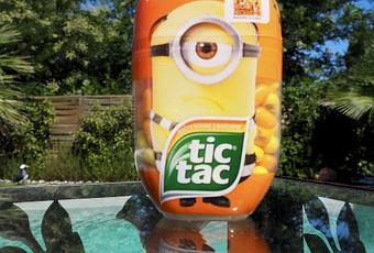 Les Minions, ces petits êtres jaunes aussi attachants qu’amusants, accompagnés de Gru, le personnage emblématique des films « Moi, moche et méchant », s’affichent aussi bien sur les boites des Tic Tac, mais également sur les pastilles, grâce au procédé « Print on Pills »… des Tic Tac avec une saveur inédite au goût de banane, ainsi qu’à la mandarine ! 8 boites XXL inédites (contenance 200 TIC TAC) en éditions limitées, disponibles actuellement en GMS au prix moyen de 3,30€. (Tip top les Tic Tac banane !).