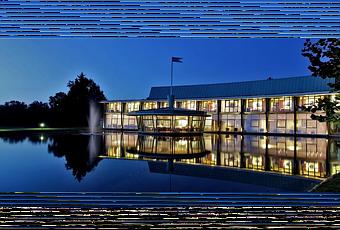 Comme souvent à cette époque, l’esthétique moderniste et conceptuelle l’emportait sur un certain confort et une chaleur humaine rassurante. Par contre, les chambres d’un grand confort et parfaitement agencées donnent soit sur le lac soit sur la forêt. La salle de restaurant, originale et unique, est une excroissance de l’hôtel qui s’avance sur le lac, et grâce aux verrières tout autour, donne l’impression de prendre ses repas sur l’eau, surtout le soir au dîner à la lueur des bougies.