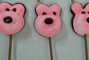 De la guimauve aux fraises dressée à la poche en forme d'oursons. Tout simple et tout mignon !