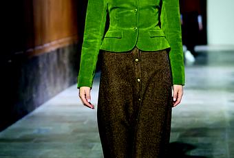 agnès b. a présenté sa collection femme automne-hiver 2017-2018 sous les peintures grandioses de la galerie Turenne à l'Hôtel des Invalides. Inspirée par une gravure du 17e siècle, dont elle a transformé un détail en jacquard tissé, agnès b. a présenté une collection aux multiples facettes. Les silhouettes féminines des tailleurs ajustés en tweed de laine côtoient harmonieusement les tenues sportswear des sweats et jogging en panne de velours ou cardigan en néoprène. Comme toujours dans ses créations, les matières un peu rudes, sélectionnées avec le plus grand soin, alpaga, flanelle et drap de laine se marient avec des matières plus douces, soie, mohair et maille Rachel.