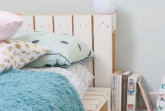 Donc voilà, la semaine dernière nous nous sommes attaqué à la réalisation de notre lit et je dois dire que nous sommes plutôt fiers du résultat.Mis a part deux ou trois palettes qu'il a fallu recouper - notamment pour réaliser la tête de lit- nous avons utilisé la plupart dans leurs intégralités.Pour que le lit tranche plus avec le mur, j'ai peint l'ensemble avec une légère couche de blanc.Afin de conserver l'effet bois que je trouve si joli.La décoration prend forme petit à petit.La plupart des objets étaient déjà là mais je suis contente d'avoir ajouté quelques bricoles, comme les coussins sur mon lit par exemple.J'adore en avoir partout et j'ai craqué sur le site Redbubble pour un coussin Rose avec des motifs graphique et un coussin blanc à pois doré qui apporte une touche de fantaisie tout en sobriété.Comme toujours sur ce site, il y a des petites pépites.