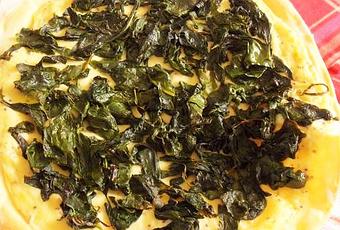 Pour la garniture : 1 grosse quantité de feuilles de Blettes de mon jardin, 1 filet d'huile d'olive bio, 1 pincée de sel
